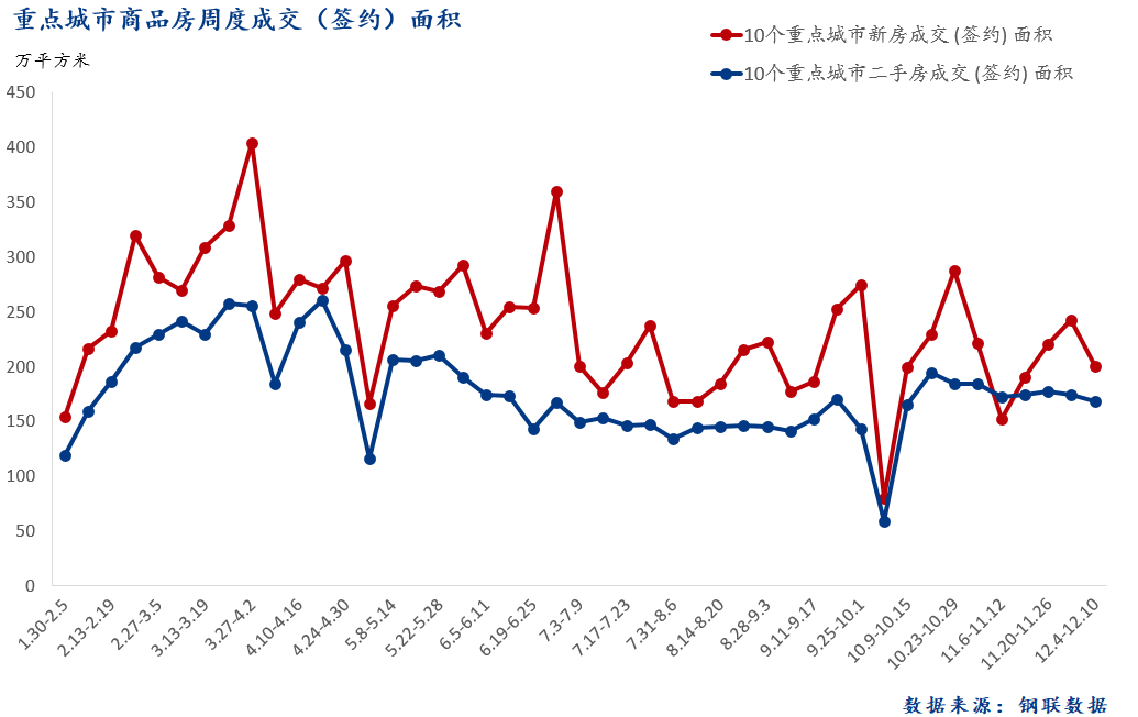 上周(12月4日-12月10日),10個重點城市新建商品房成交(簽約)面積總計200.08萬平方米,周環(huán)比降17.5%,環(huán)比止升轉(zhuǎn)降。