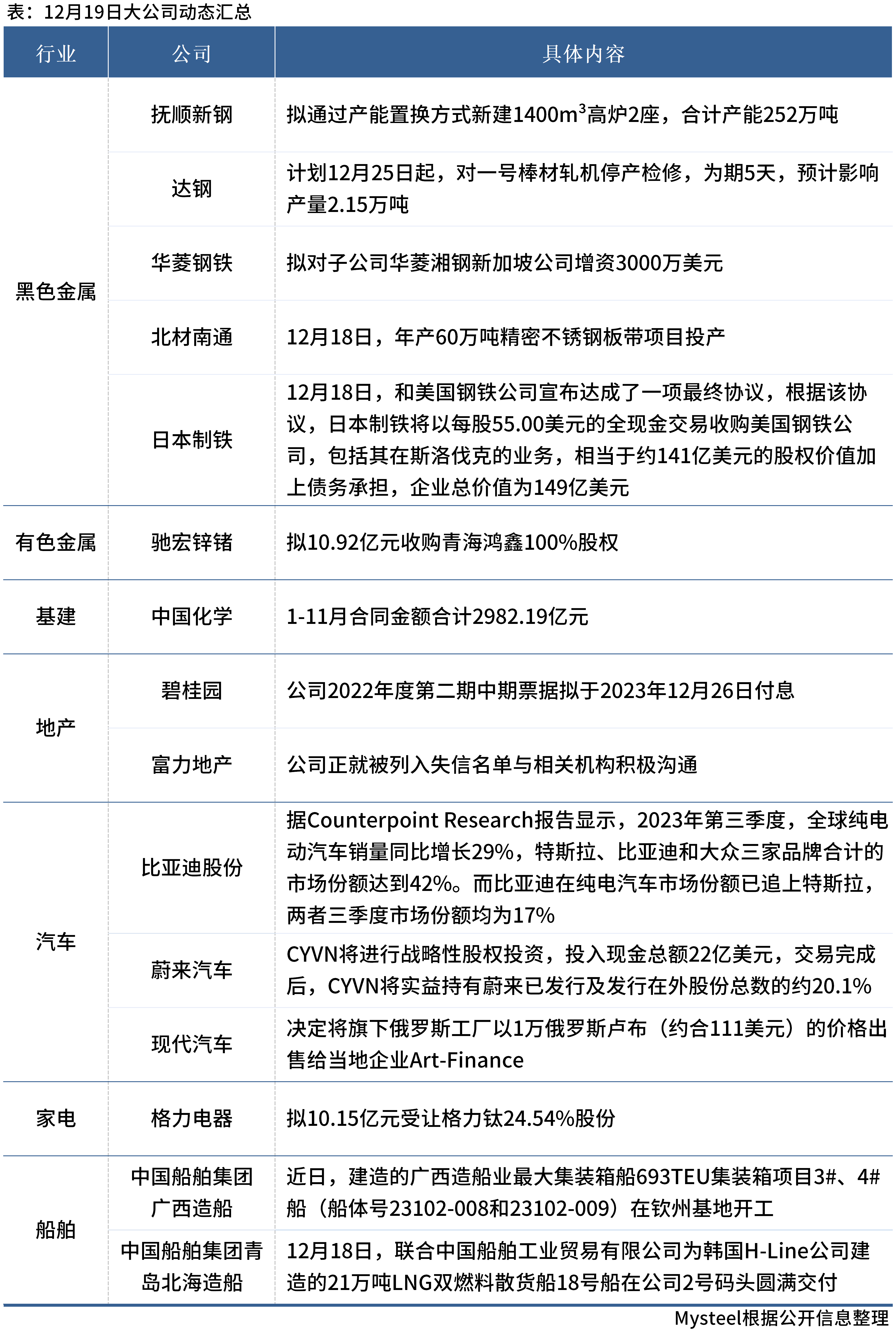12月20日,Mysteel匯總部分大宗商品相關(guān)企業(yè)動(dòng)態(tài)。