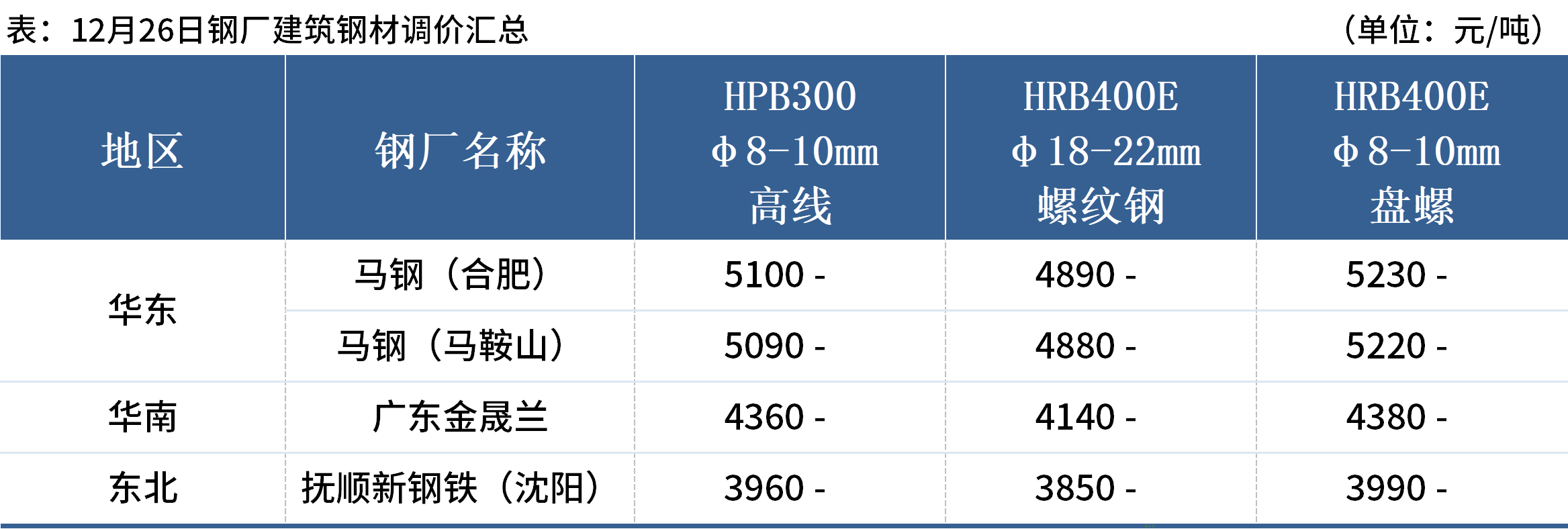 12月26日,全國(guó)累計(jì)3家鋼廠發(fā)布調(diào)價(jià)信息,整體調(diào)幅在0元/噸。