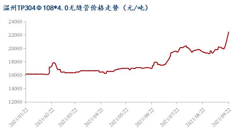 從原料端看,截止發(fā)稿前,青山及德龍圓鋼仍維持封盤狀態(tài)。而22日早間上泰開出新價,304圓鋼漲幅高達(dá)1100元/噸,價格走至18500元/噸。與此同時我們上周關(guān)于大廠此次封盤是為調(diào)漲鋪墊的推測也似乎坐實。